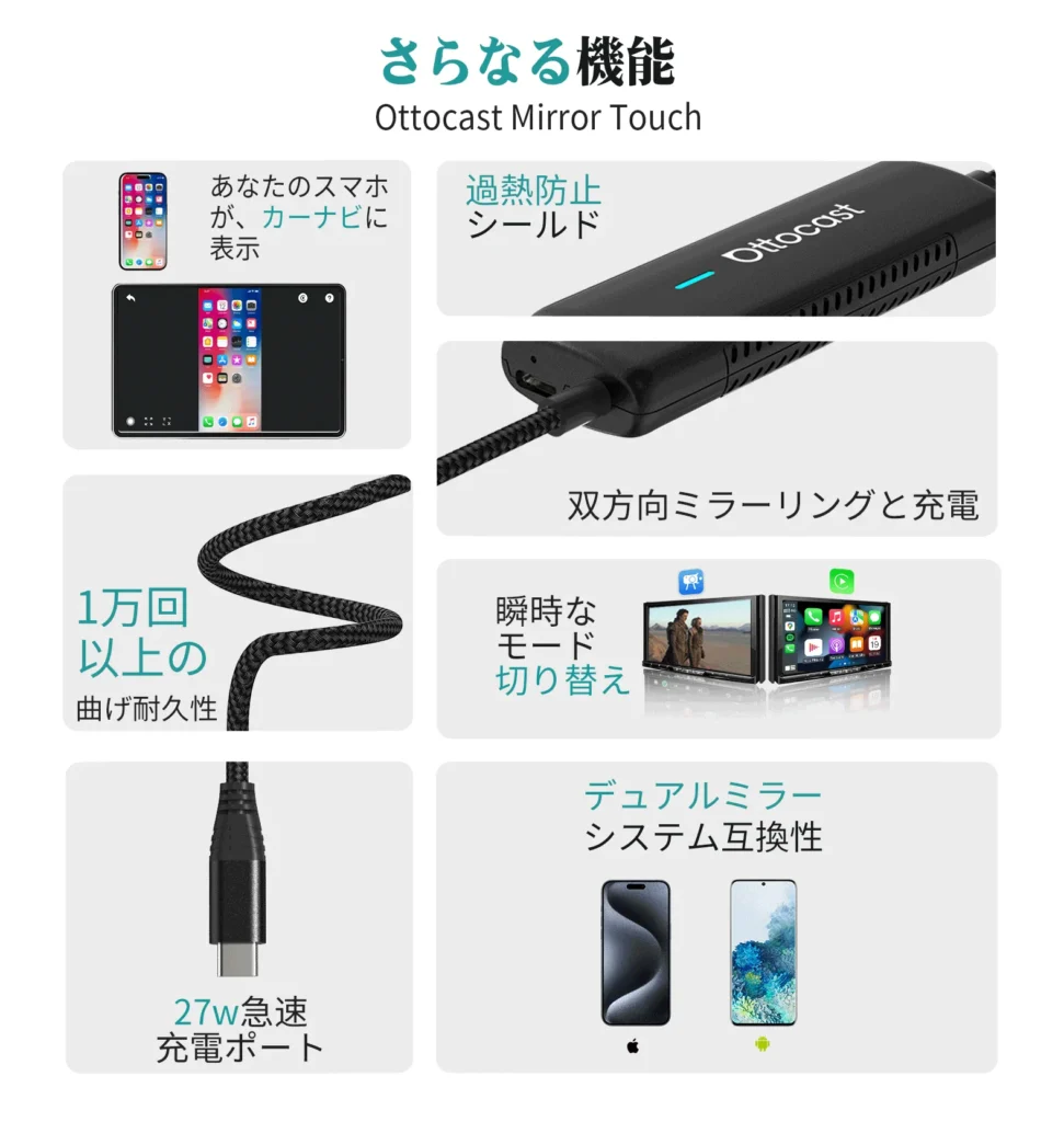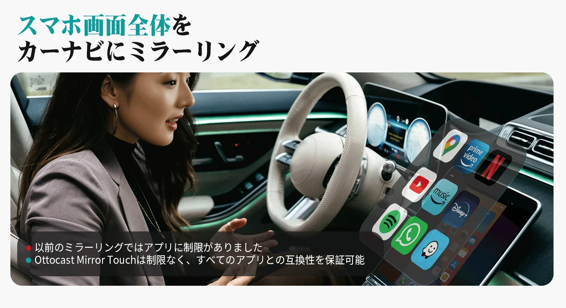 有線のAppleCarPlay/AndroidAutoをワイヤレス接続に変換することが可能です。