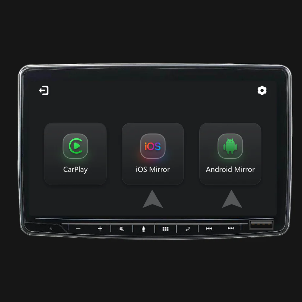 ミラーリング・AppleCarPlay・AndroidAutoをタッチで簡単に切り替えが可能です。